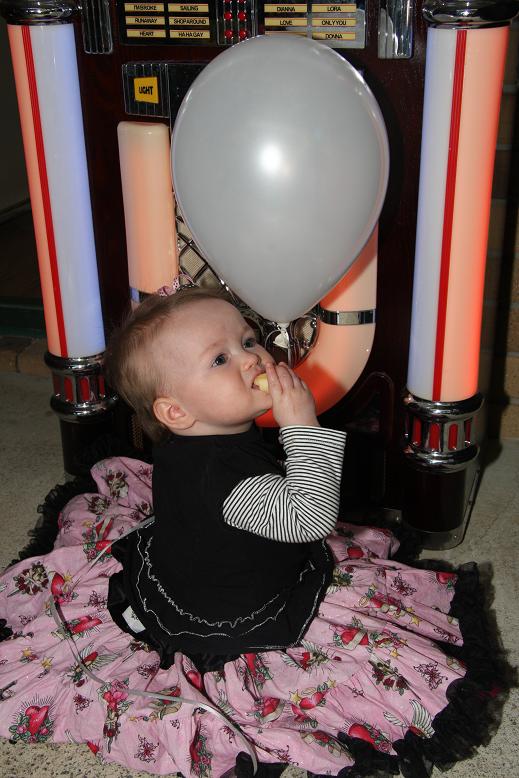 All of the bubbas had a good boogie! I love watching babies dance, so uninhibited! Best dancer went to little Imogen, who entertained us with the chicken dance! Dude, an 18 month old doing the chicken dance is too adorable!! This was especially hard to pick, as there were some rad moves going around! Little Pheonix was getting dowwwwwwn! Imogen won herself some black babylegs with white stars, perfect for rock chicks!